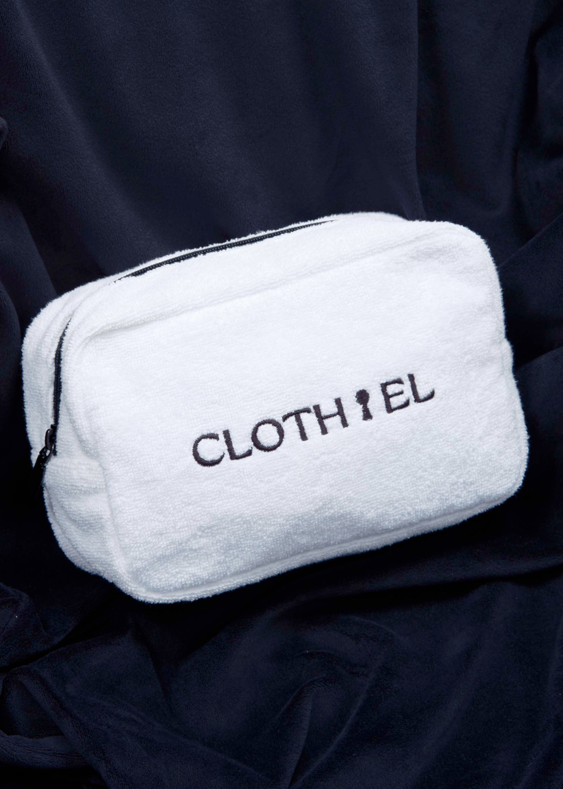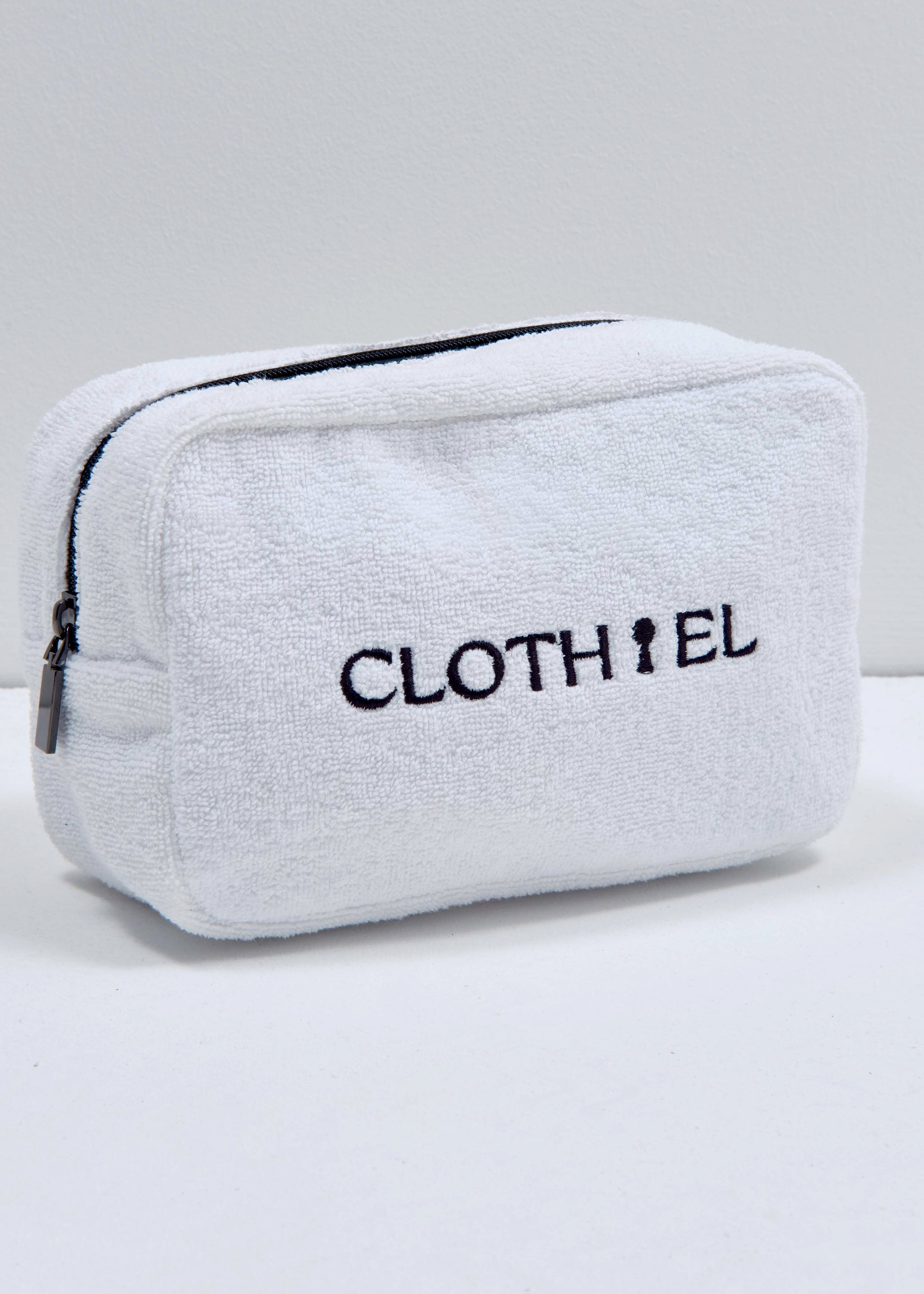 Designed with travel, the gym, or a pool day in mind, this roomy black-and-white cosmetic bag is your go-to companion for keeping essentials organized. Embellished with our signature logo and finished with a sleek black zipper, it combines function with style. Inside, a waterproof lining protects against spills and makes cleaning effortless.